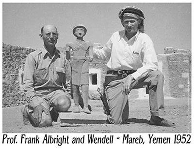 The expedition, the first of four organized in that region by the American Foundation for the Study of Man, included world-famous archaeological scholar Professor William F. Albright and was headed up by a fearless young explorer named Wendell Phillips, who was fresh from his success traversing the African continent from Cairo to Capetown. Many believe Phillips to be a role model for Harrison Ford’s dashing archaeologist hero in the Indiana Jones film series, right down to the enormous six-shooter low-riding on his hip.