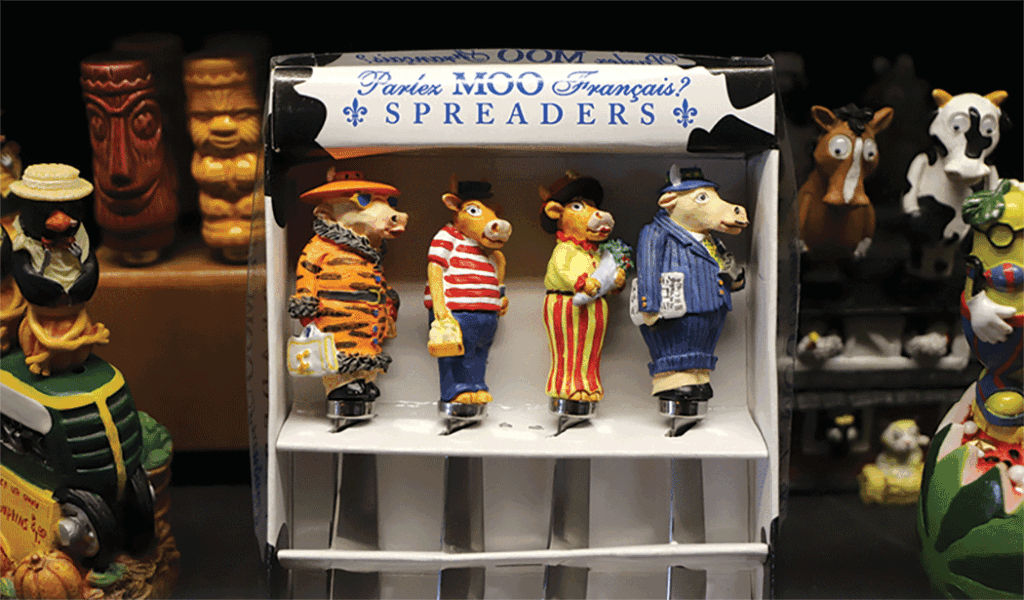 IOWA PENTACREST MUSEUMS, Old Capitol Museum & The UI Museum of Natural History, Iowa City. PentacrestMuseums.uiowa.edu. Thrift Style. Revisit a time when creativity mattered and nothing went to waste. Featuring 41 objects, this exhibition explores how everyday feed sacks were transformed into dresses, aprons, quilts, toys, and other household essentials during the Great Depression and World War II. Old Capitol Museum, April 6–August 11. MY Collections: That’s a Gouda Knife. Beth Cody of Johnson County displays her collection of novelty cheese spreaders. View the entire collection at McBride Hall or online through Spring 2026. MY Collections: Home Run Threads. See Lynn Smith’s collection of game-worn jerseys from teams in Minor League Baseball and assorted college wood-bat summer leagues. View at McBride Hall or online through Spring 2026.