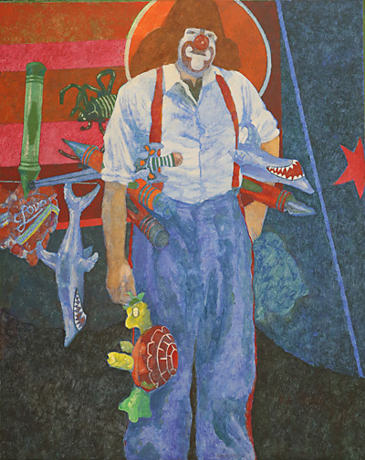 Byron Burford: Ringmaster, which runs through October 29, celebrates the work of Byron Burford (1920–2011), an American figurative painter and printmaker who studied at the University of Iowa and was mentored by Grant Wood. Burford taught painting at the U of I for 38 years, spending his break time traveling with circuses, playing drums with the circus band, and painting. A popular award-winning artist with a large following, Burford was a Guggenheim Fellow, and his work is in many museum collections. He captured poignant moments in the lived experience of soldiers, athletes, jazz musicians, factory workers, and circus performers. This exhibition focuses on his circus art. Reminiscent of Art Nouveau circus posters by French artist Toulouse-Lautrec, with a more surreal, modern sensibility, Burford’s paintings, collages, and prints combine swaths of bright colors with circus imagery to create an intimate visual experience.