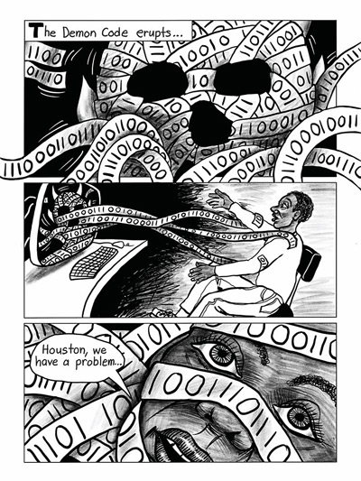 Jackson had created a visual style for the book, but that is just one aspect of what it takes to create a graphic novel set in a dystopian future. He and McDonald had plenty of additional work to do to get the story told.