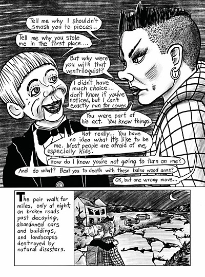 “One of the things that we’ve learned the hard way,” he said, “is how much work the drawing takes. We discovered about halfway through, with him drawing the whole thing, that actually well-known graphic novelists have crews that they bring in to help them do this. . . . [Working as a team of two] is a wonderful way to work, but it’s also a very intense way to work on something. It’s kind of been our whole world for a while.”