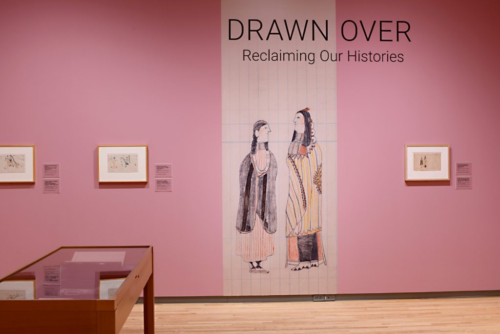 If you are wondering how to honor Iowa’s Native American history this month, check out Drawn Over: Reclaiming Our Histories, a new exhibition at the University of Iowa Stanley Museum of Art in Iowa City. Guest curated by Dr. Jacki Thompson Rand (citizen of the Choctaw Nation of Oklahoma and Associate Vice Chancellor for Native Affairs at University of Illinois Urbana-Champaign), this phenomenal exhibition showcases 32 Plains Indian ledger drawings from the Stanley’s collection. Rand and her cohorts have reclaimed these historical images, rescuing them from being seen as antiquated historical footnotes and placing them within the larger living framework of Native American culture, history, and ongoing artistry.