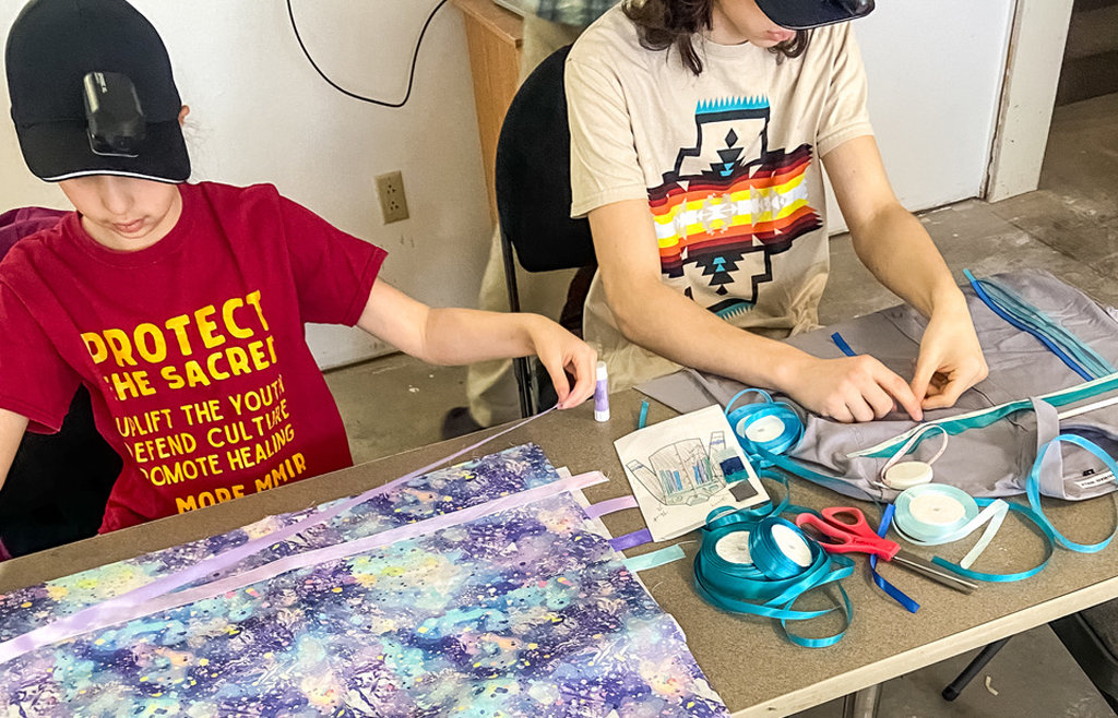 With a vision of blending traditional dress with modern technology, indigenous designers will guide local indigenous participants ages 8 to 75 in creating ribbon skirts and shirts that incorporate lighted elements. Wired lights—sewn into each design and activated with a handheld controller in a pocket—can be programmed to display color patterns, movement, or imagery—illuminated, for instance, to depict a constellation. “The sky’s the limit for what they want to do,” offers Kirk, with a pun, post pizza.