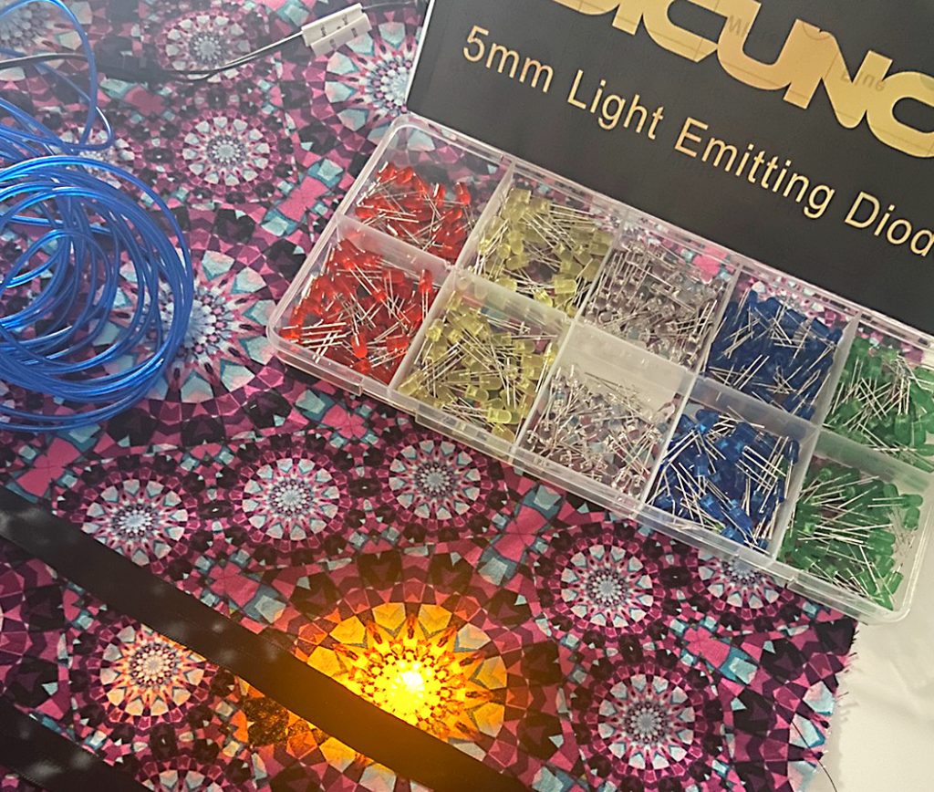 “We’ve got different switches for things that react to sound,” he says, “and things that react to pressure—they could have a pressure switch in their shoes,” for instance, so lights flash with each step.