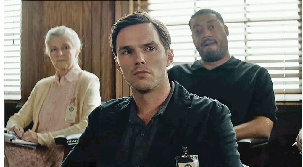 Justin Kemp (Hoult) is the second of twelve candidates appointed for jury duty. He’s married, in his 30s, and an AA member with a DUI history. His wife (Zoey Deutch) is in her final month of pregnancy after a miscarriage, a trauma that still plagues the couple. Kemp’s perspective is a mystery that unravels throughout the film, adding a twist that turns the court genre on its side. And how this story will come in for a landing is anyone’s guess.