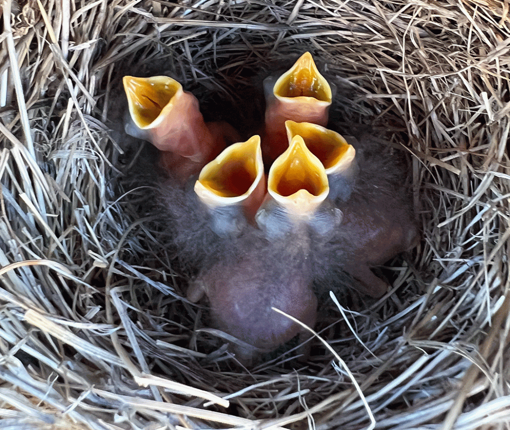 Bluebird nestlings, with eyes not open yet (photo by Diane Porter)
