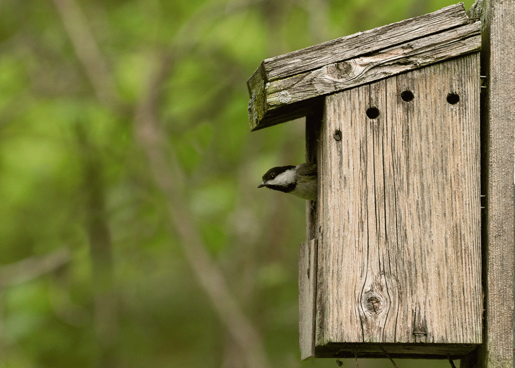 A pair of Black-capped Chickadees has to capture 6,000 to 9,000 caterpillars to raise one nest of babies. (Photo by Diane Porter)