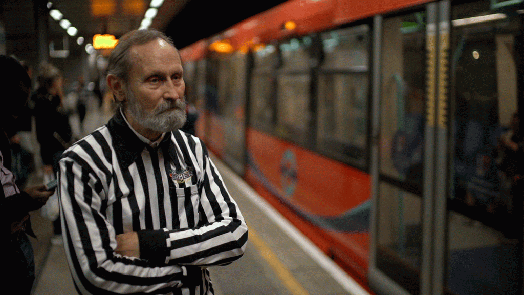 Day has already appeared in nearly 20 documentaries, including The King of Kong: A Fistful of Quarters (2007), which chronicles the showdown between Donkey Kong record holders Billy Mitchell and Steve Wiebe. The movie features Day in his signature black-and-white-striped referee jersey and has a now-iconic scene of him playing guitar in front of an abandoned barn. King of Kong had a huge cultural impact and drew Day into the world of gaming conference appearances and speaking engagements.