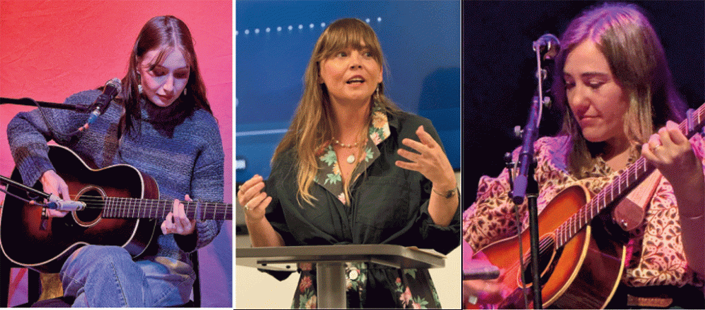 The public side of the festival offered a lively mix of musical performances and insightful conversations. Featured artists took to the stage not only to showcase their talents but also to speak about their creative processes to give audiences a deeper sense of both the music and the craft behind it. The live shows were purposely stripped-down acoustic affairs, usually just the artist with a guitar, so one could hear and appreciate the lyrics and song structures.