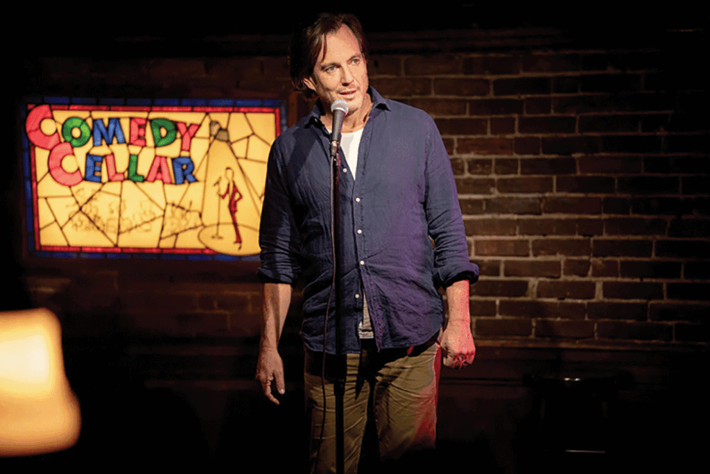 In the film, married couple Alex and Tara, now in their middle years, are each exploring new avenues. While Tara begins coaching young athletes, Alex is seeking a creative outlet to offset a dull job in finance. In search of entertainment, he wanders into a standup comedy club, one of those subterranean venues where novices test their material. But he discovers he doesn’t have enough cash for the cover charge. Instead of leaving, he makes the rash decision to perform, which gives him free admission. All he needs now is five minutes of material!
